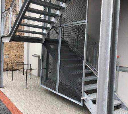 Brandschutztreppen hingegen sind speziell konzipiert, um im Notfall einen sicheren Fluchtweg zu gewährleisten. Ihre robuste Bauweise entspricht den strengen Anforderungen der Brandschutzverordnungen und sorgt dafür, dass die Evakuierung im Brandfall schnell und gefahrlos erfolgt.